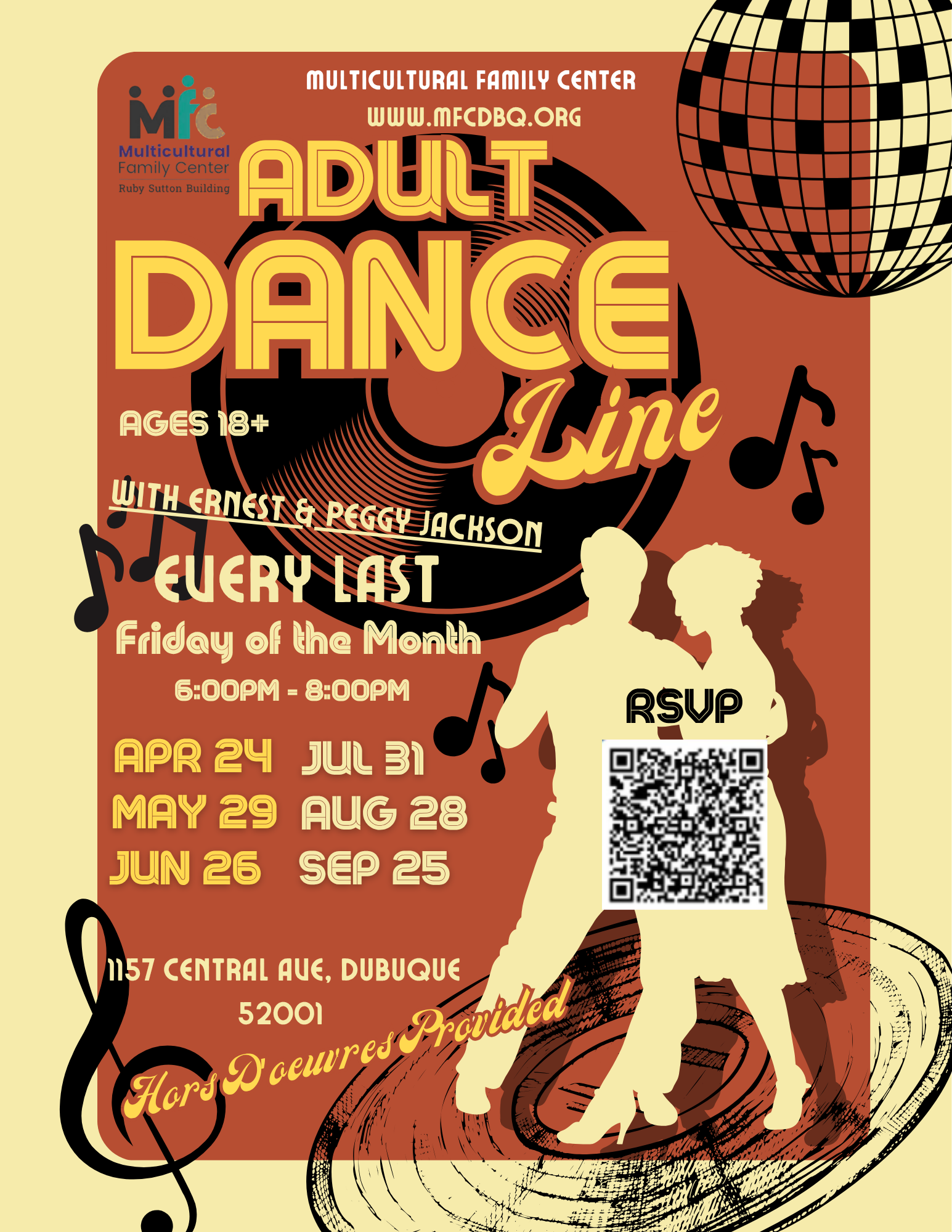 Every Last Friday of the month! Step into the rhythm with our high‑energy Adult Dance Line classes with Peggy & Ernest Jackson.